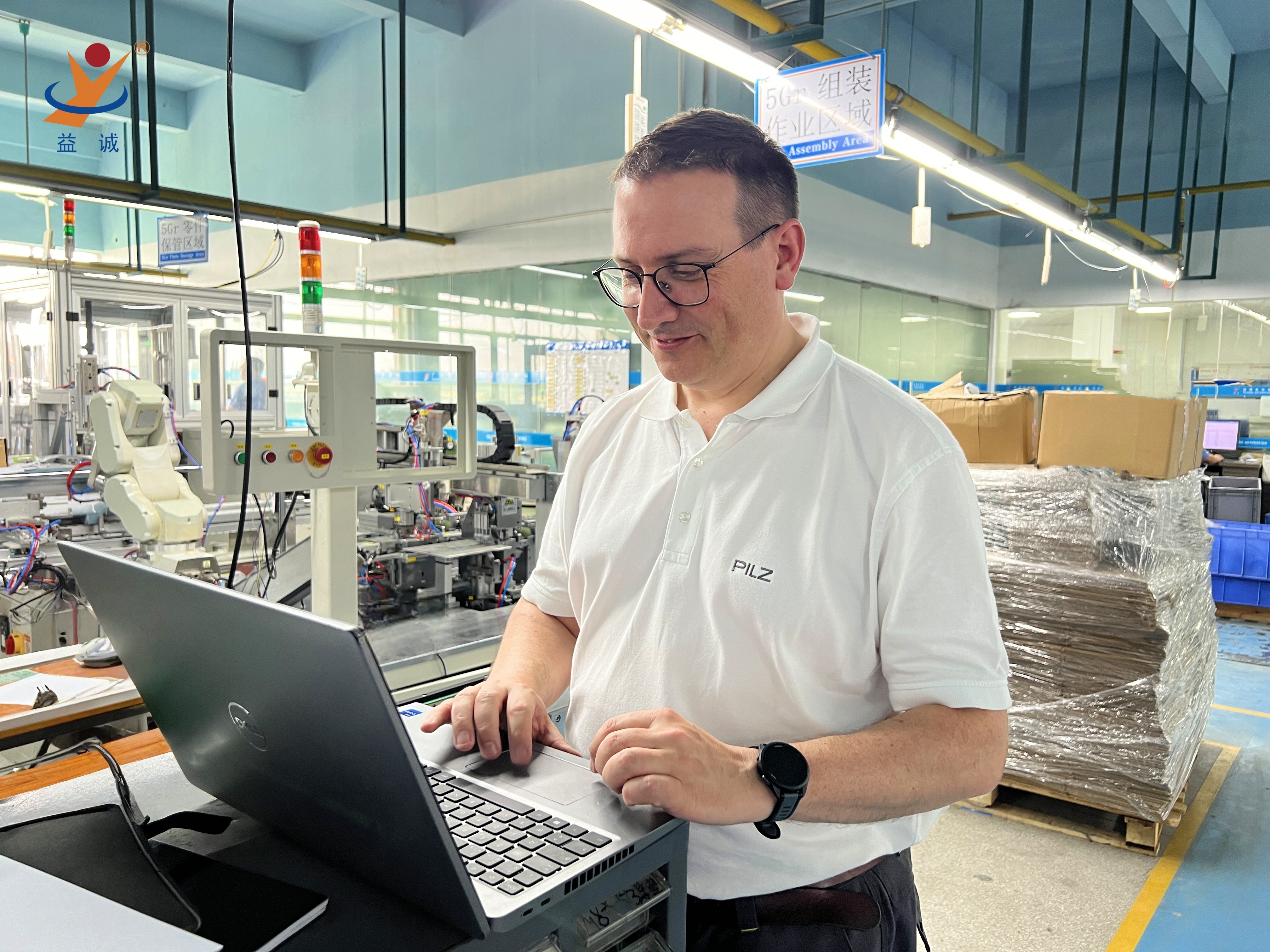 来自美国的客户团队是九州酷游的资深优质合作伙伴,目前正在对一条高端智能网络设备自动化生产线进行验收,该条高智能、高科技的全自动化生产线由九州酷游结合客户深度需求研制。